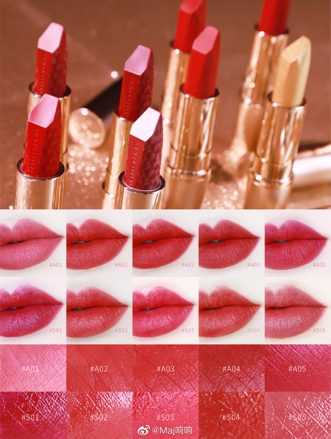 完美日记星动臻色金钻唇膏全试色