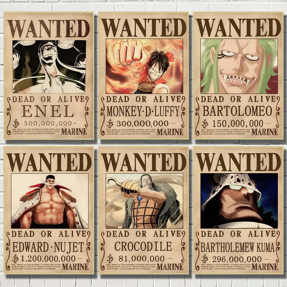 One Piece Wanted Luffy Wall Stickers Vintage Paper Home Decor Wanted Posters Anime Posters Kraft Paper Poster Stickers Homewall Sticker Aliexpress
